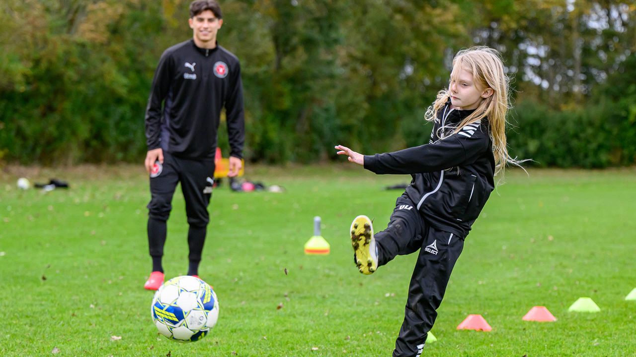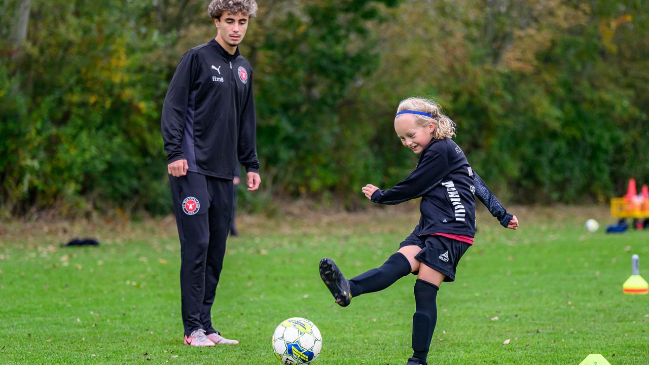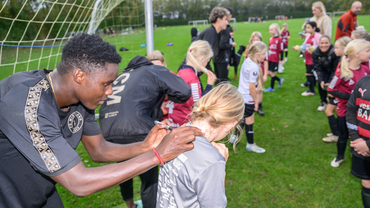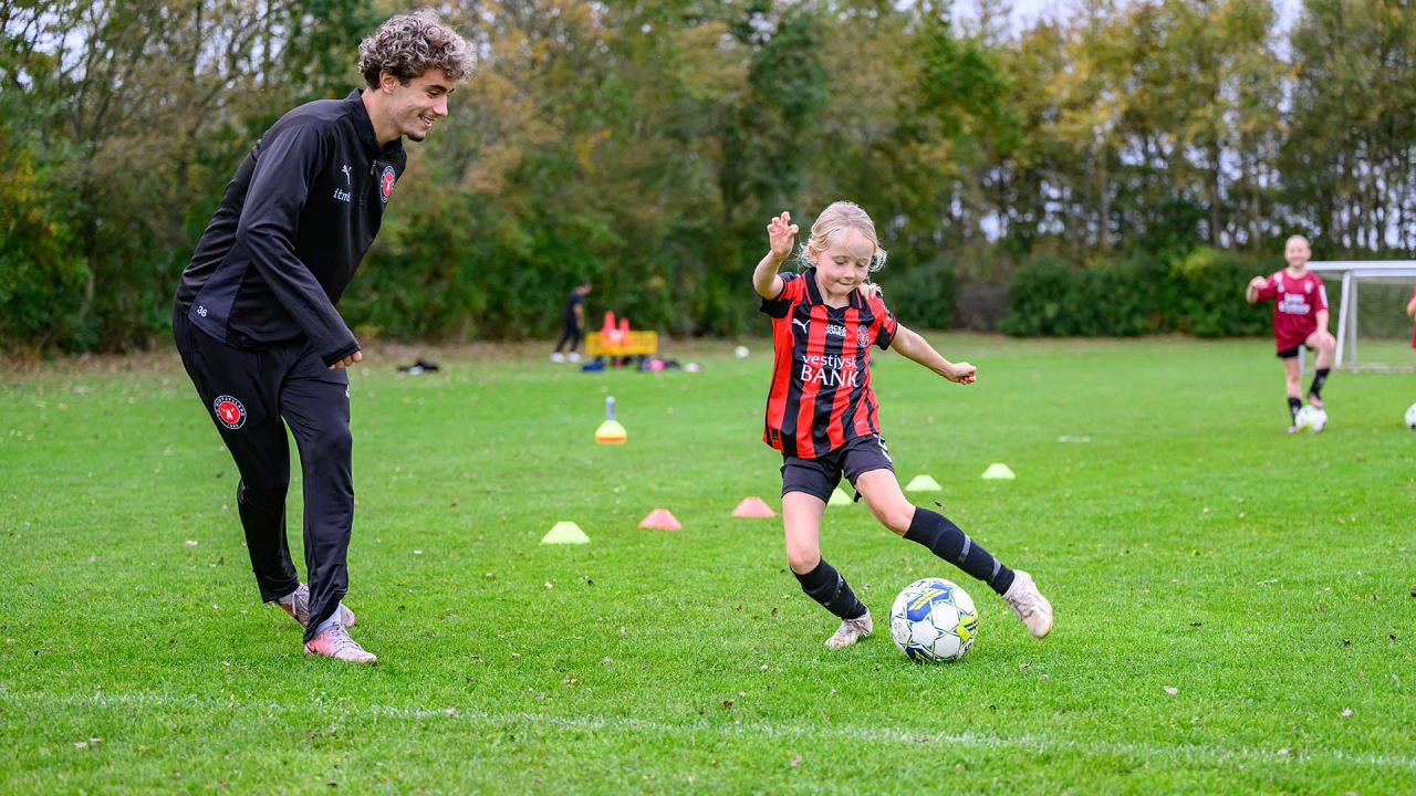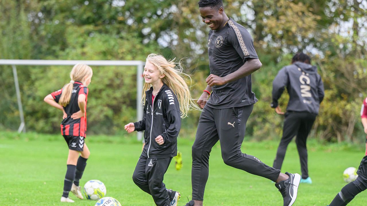 Der blev driblet, sparket på mål og udfordret på livet løs, og det var fedt at se FCM give alt af sig selv med masser af engagement og glæde ved legen med klubbens spillere.