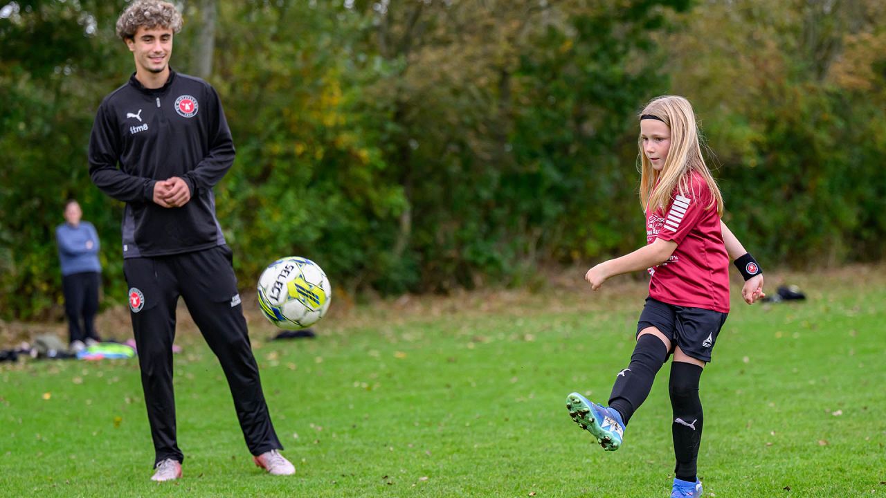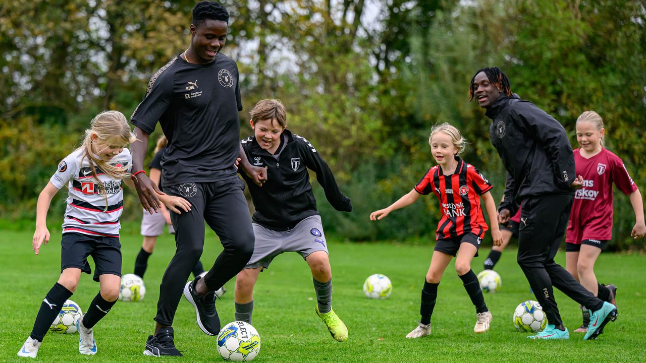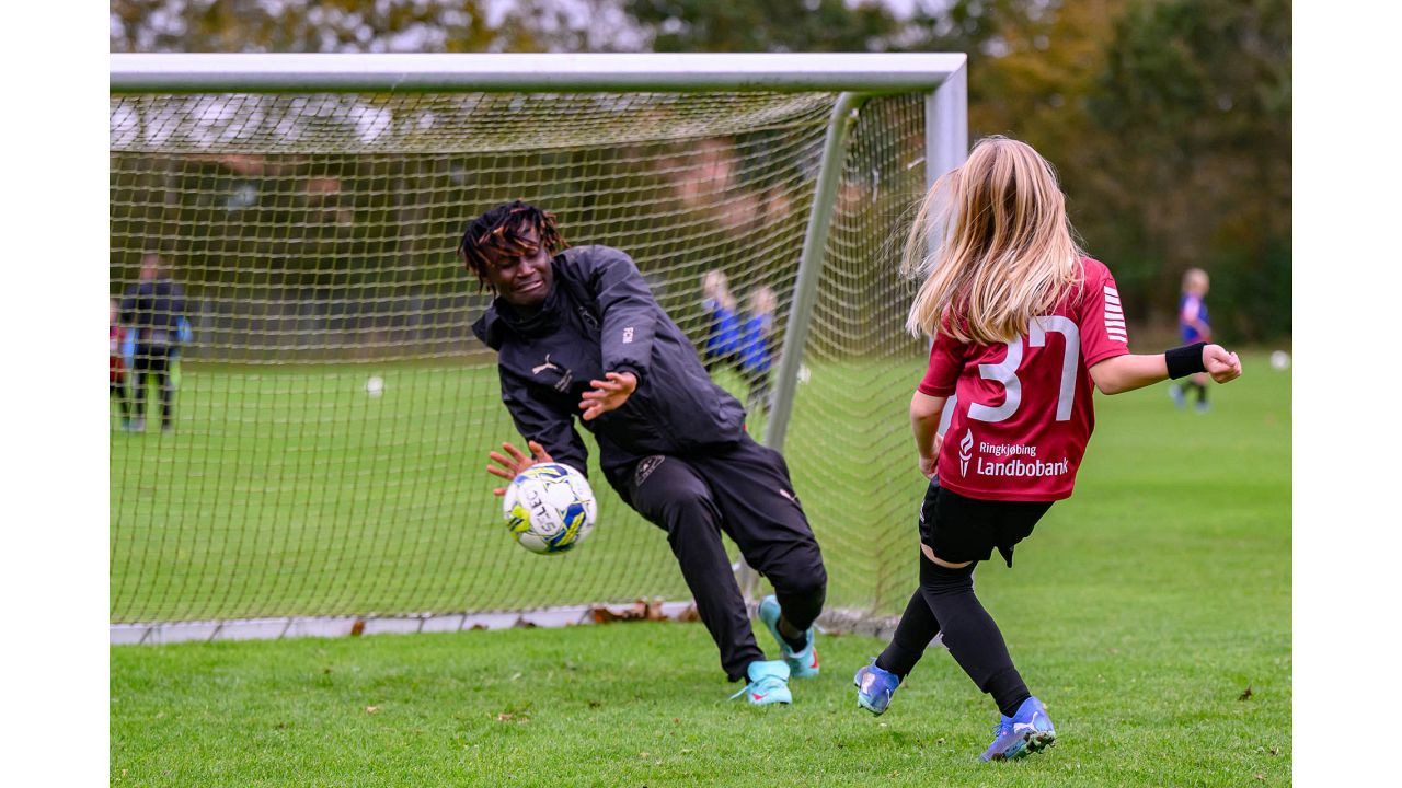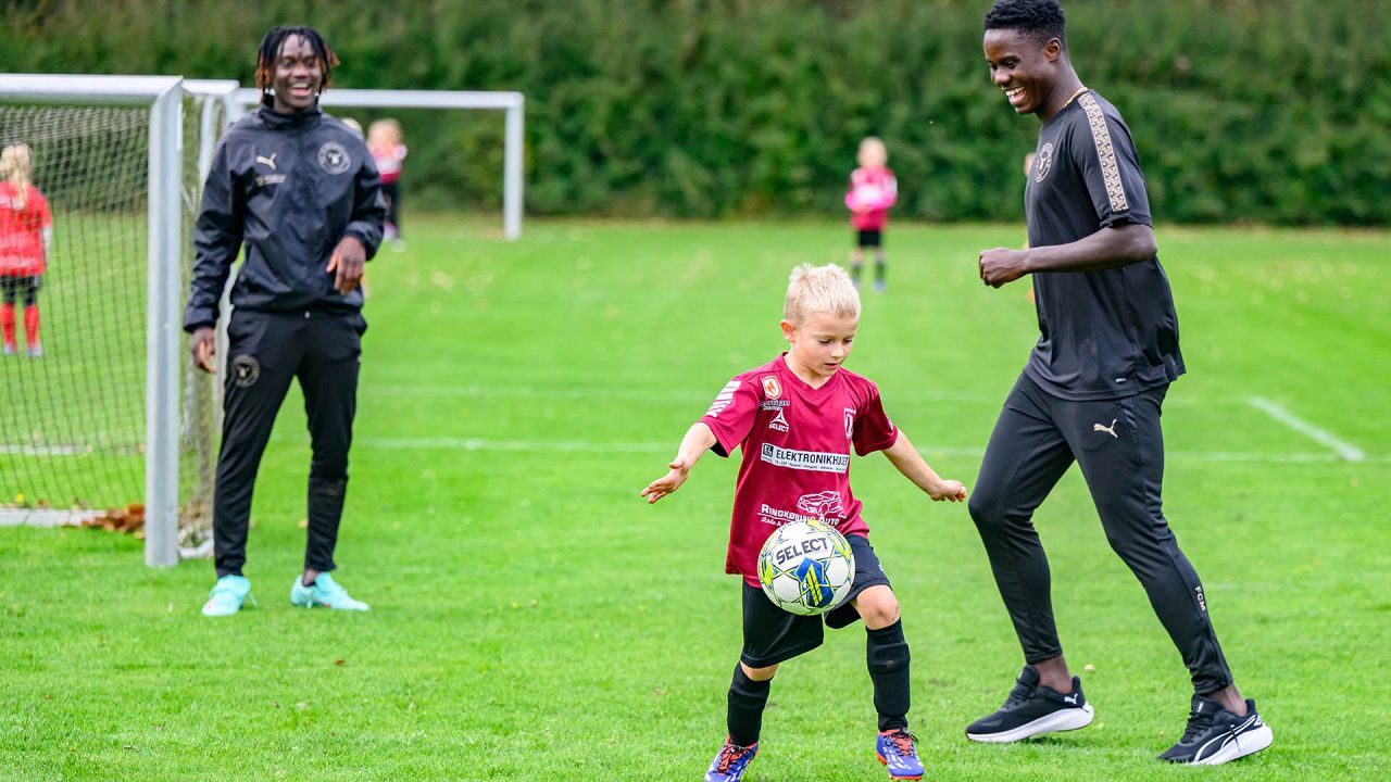 Der blev driblet, sparket på mål og udfordret på livet løs, og det var fedt at se FCM give alt af sig selv med masser af engagement og glæde ved legen med klubbens spillere.