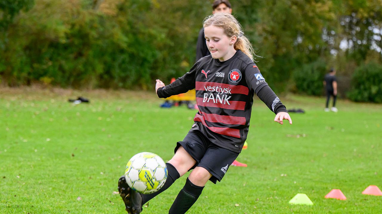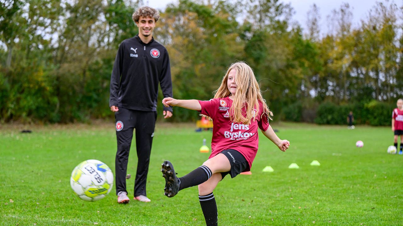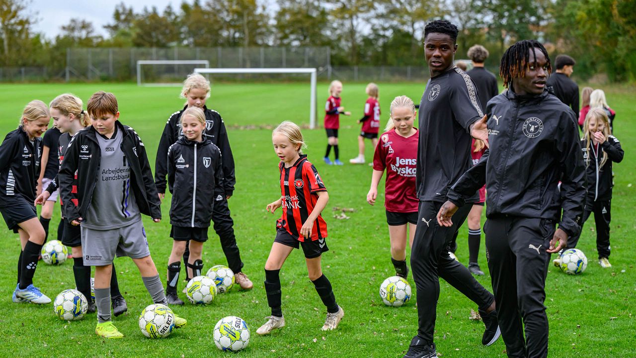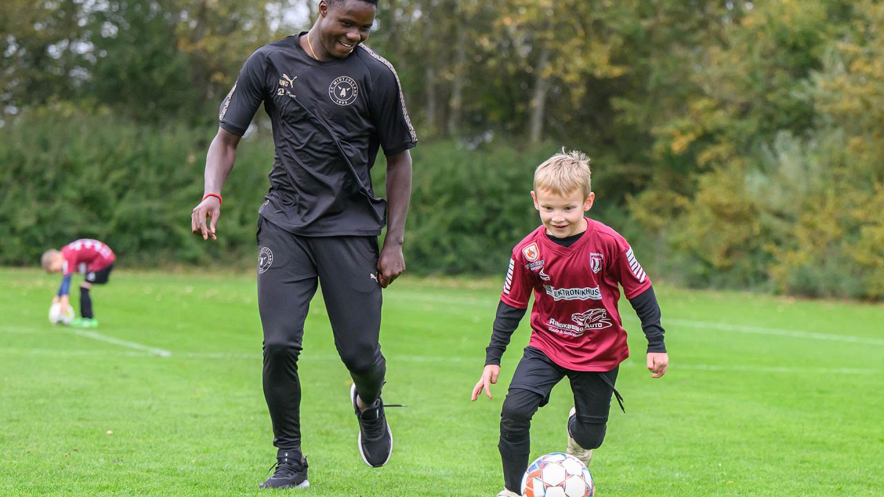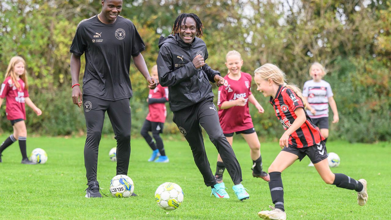 Der blev driblet, sparket på mål og udfordret på livet løs, og det var fedt at se FCM give alt af sig selv med masser af engagement og glæde ved legen med klubbens spillere.
